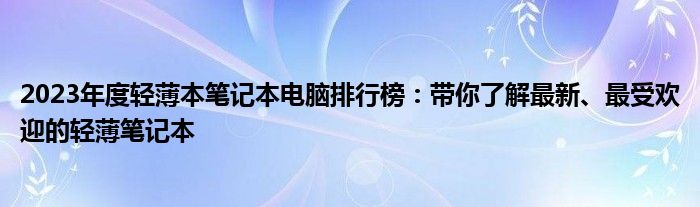 2023年度轻薄本笔记本电脑排行榜:带你了解最新、最受欢迎的轻薄笔记本
