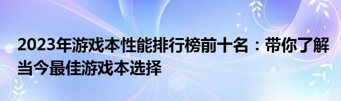 2023年游戏本性能排行榜前十名:带你了解当今最佳游戏本选择