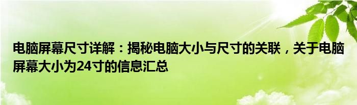 电脑屏幕尺寸详解:揭秘电脑大小与尺寸的关联,关于电脑屏幕大小为24寸的信息汇总