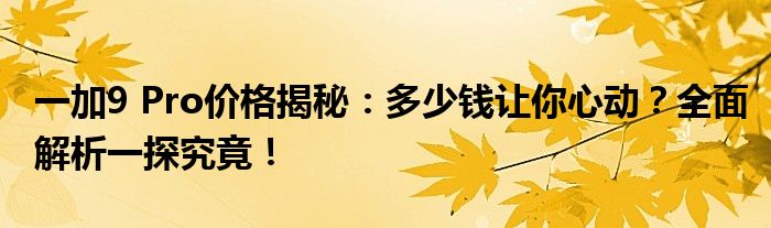 一加9 Pro价格揭秘:多少钱让你心动?全面解析一探究竟!
