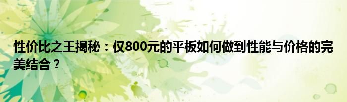 性价比之王揭秘:仅800元的平板如何做到性能与价格的完美结合?