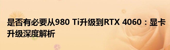是否有必要从980 Ti升级到RTX 4060:显卡升级深度解析