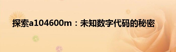 本文仅为初步探索,关于"a104600m"的更多信息和真实含义,还有待进一步研究和发现。
