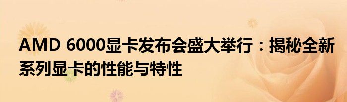 AMD 6000显卡发布会盛大举行:揭秘全新系列显卡的性能与特性