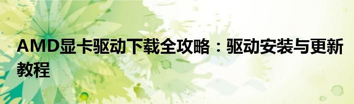 AMD显卡驱动下载全攻略:驱动安装与更新教程