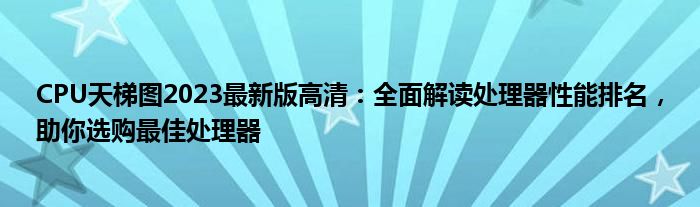 CPU天梯图2023最新版高清:全面解读处理器性能排名,助你选购最佳处理器