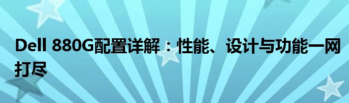 随着科技的快速发展,电脑配置已成为购买决策的重要因素之一。作为知名品牌之一,Dell 880G系列电脑备受关注。本文将详细介绍Dell 880G的配置参数、性能表现以及设计与功能特点,帮助您更好地了解这款电脑。