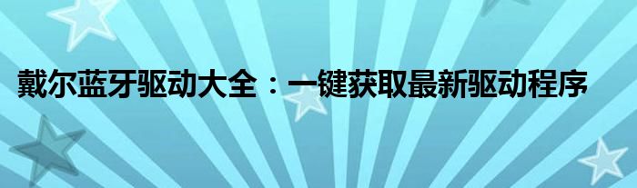 戴尔蓝牙驱动大全:一键获取最新驱动程序