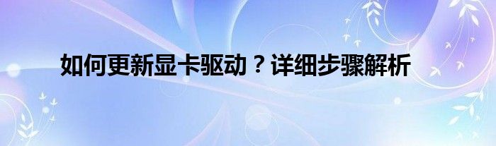 如何更新显卡驱动?详细步骤解析