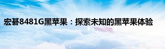 宏碁8481G黑苹果:探索未知的黑苹果体验